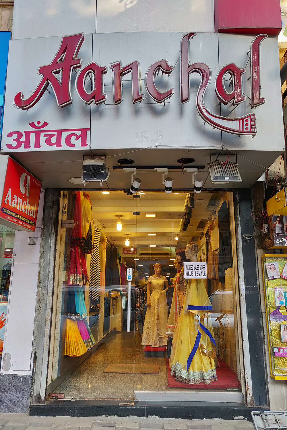 Along M.G. road you’ll find numerous shops to buy the latest trend from. Aanchal has been around for a long time, but it’s a space where you and your mom, both will find something. If you’re shopping alone, don’t be deterred by what the mannequins adorn.