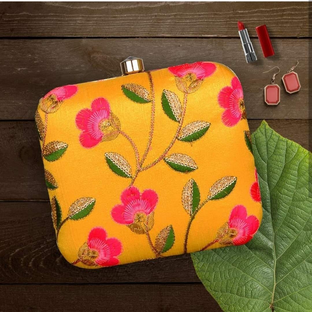You can find a variety of designs starting at INR 950 plus shipping.We adored the ones that had floral handwork on it. Simple yet elegant, they pair well with long sundresses as well as ethnic pieces. The single side clutch starts at INR 1100 while a double side clutch, at INR 1300.