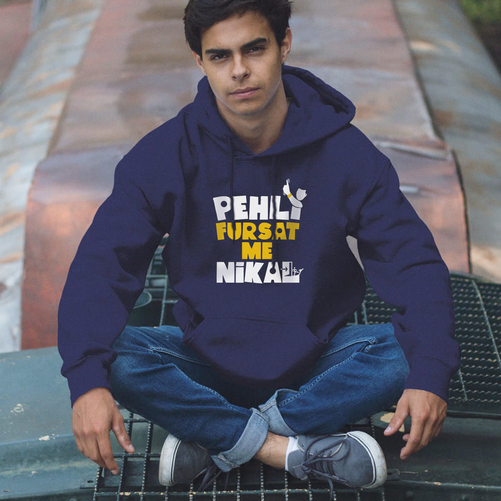 What is a travel hoodie and what does it do, you may ask. Let us explain. Well, it is a multi-purpose, multi-utilitarian piece with 15 travel features including a sunglass pocket, passport pocket, an eye mask, earphone holders, built-in gloves and a charger pocket, among others. But you will also get a lot of other options in hoodies with witty quotes & texts on them such as Malt Whiskey in the Walt Disney logo pattern, 'pehli phursat me nikal', 'balidan dena hoga', etc.