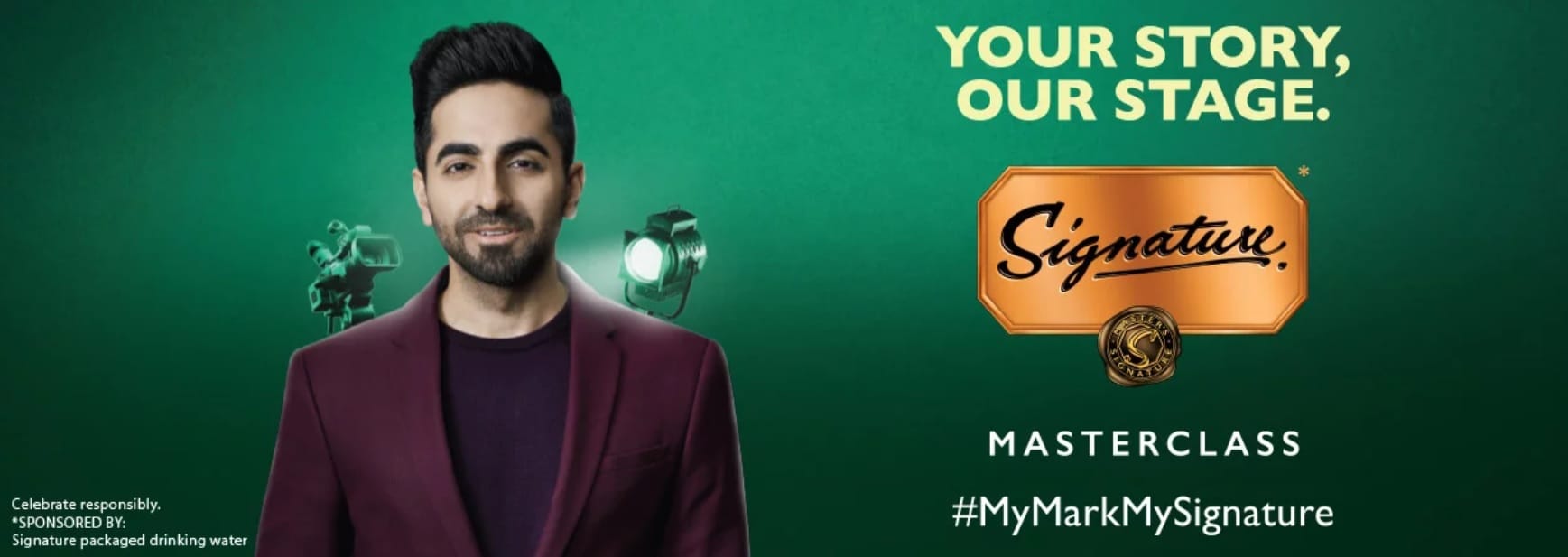 On the 11th of January enjoy an evening full of interesting stories and discussions on the art of film making and much more. Signature is back with anther Masterclass session and this time it's with the actor who is currently on the top of a lot of charts- Ayushman Khurana. Learn the art of telling unique stories and discuss the art that goes behind making a movie. Post the discussion, you'll also get to enjoy a performance by Ayushmann's own band - "Ayushmann Bhava".