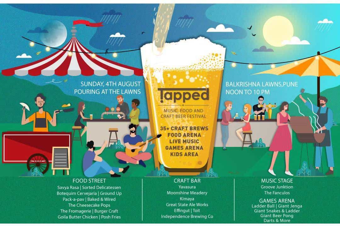 Are you ready for the biggest Craft Beer Festival? For the seventh year in a row, Tapped is back in Pune for the biggest extravaganza! Enjoy a perfect Sunday picnic vibe with delicious food and craft beer from the best breweries. You can also try new brews which will be introduced especially at TAPPED. You can enjoy your food ann beer while grooving to live performances curated just for the event. Not just that, you can enjoy fun games like golf pong and angry birds. You can expect beer from famous breweries such as Yavasura, Moonshine Meadery, Kimaya, Great State Ale Works, Effingut, Toit and Independence Brewing Co!
