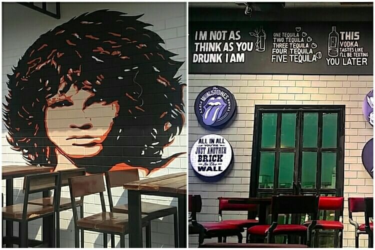 We loved the decor of the place which is done up with old-school metal benches, old lamps and a whole lot of beautiful graffiti of our favourite bands from the past. While you'd see Lenon owning a wall, Morrison too has a mural to himself. Visually the place is a treat for a music lover's eyes. Having said that, we walked in on a Bollywood night, so we hope to stop by soon again to hear some of the artists that feature on their walls.